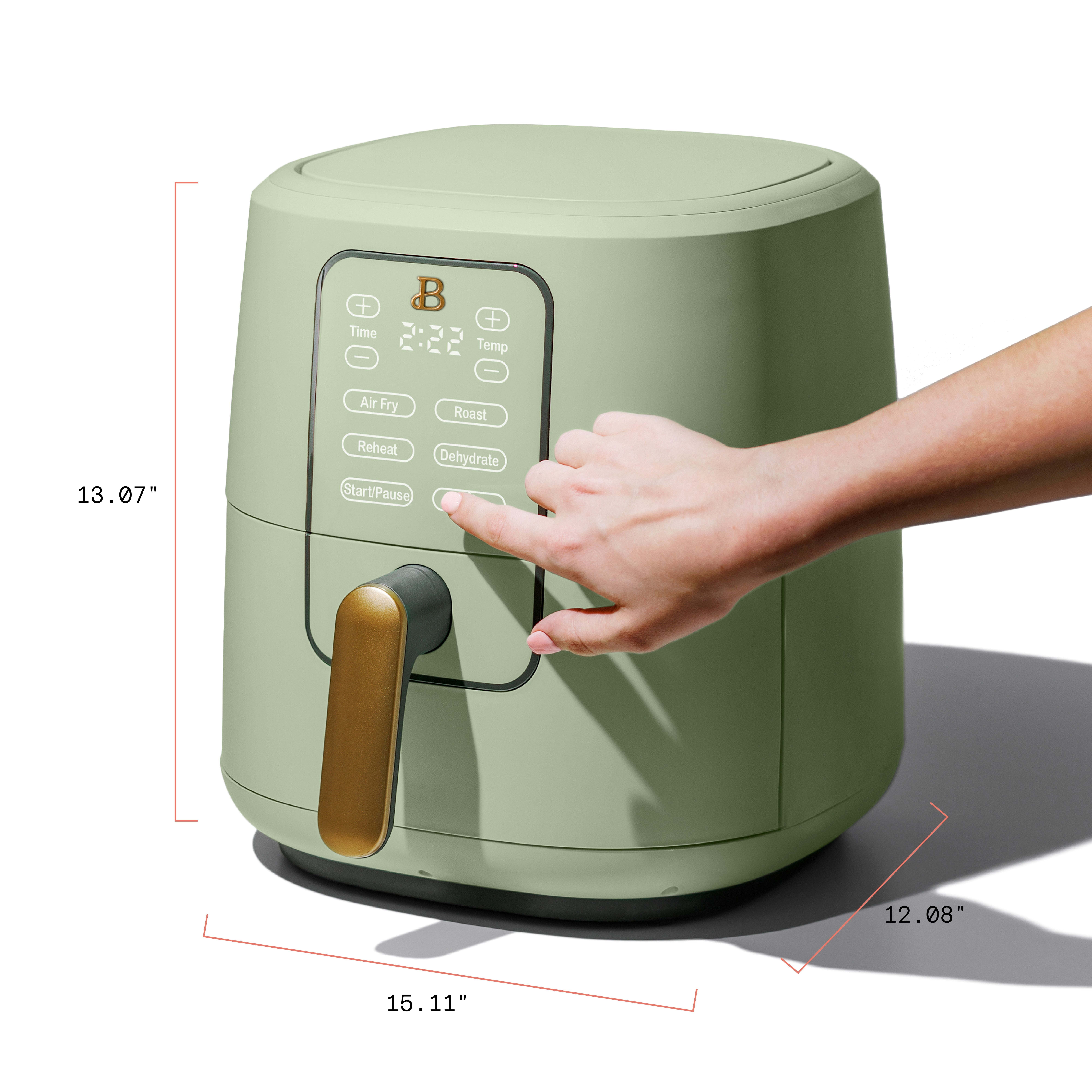 Our signature touch-activated display illuminates only when you need it. No dials, buttons or knobs.Powerful 1700w system with stainless steel provides faster heat-up and cool-down times.High Performance Circular Heat Technology and nonstick crisping tray promote fast, crispy, evenly-cooked meals.Large 5lb (2lb French fry) food capacity is ideal for chicken wings, small roast chickens, pastries, burgers and more.Air fried favorites have 88% less fat and 65% fewer calories than restaurant-fried foods.60-minute automatic shut-off function adds safety and peace of mind.Removable crisping tray and pan are dishwasher safe and PFOA/PFOS-free for fast and easy clean-up.