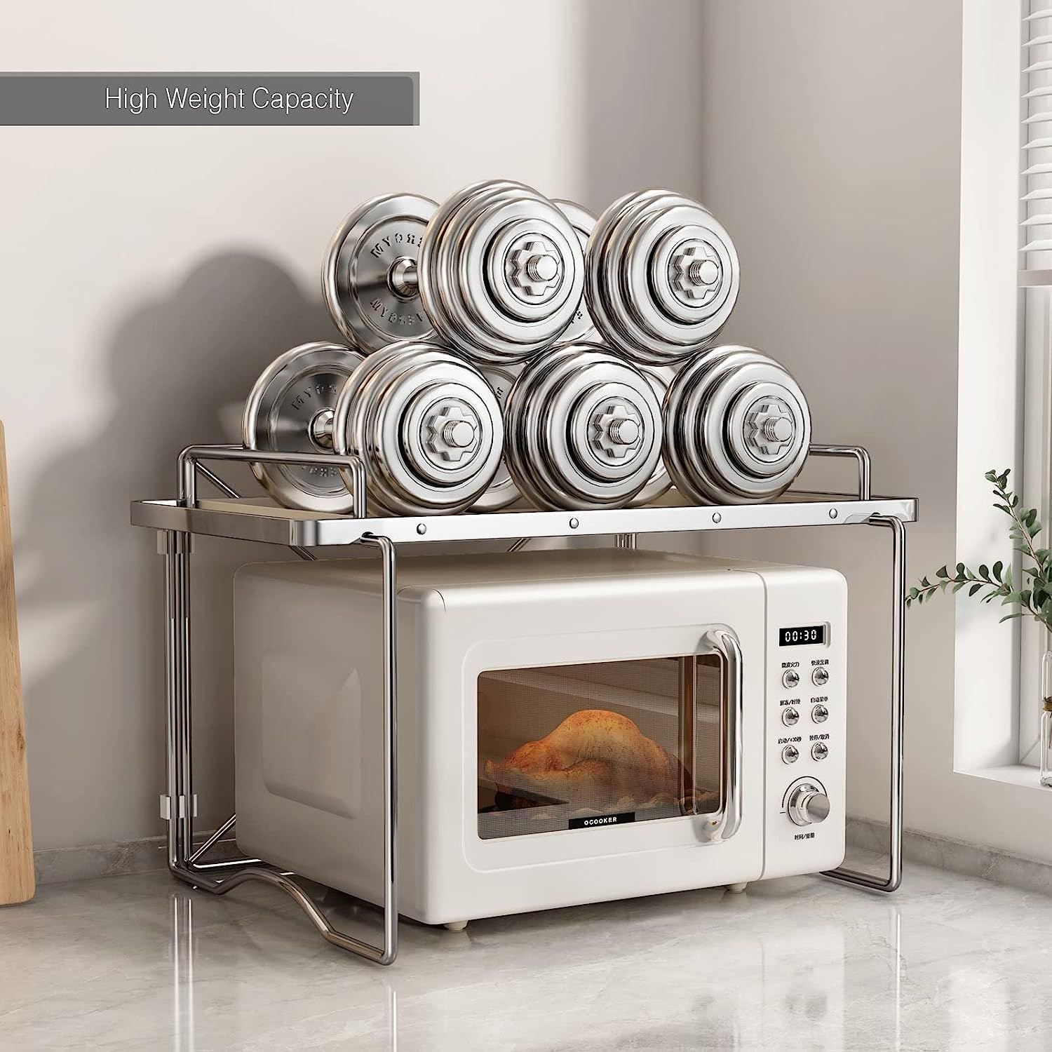 4.Stainless Steel & Heavy Duty:Microwave Stand is Made of strong and durable SUS304 stainless steel-rustproof,which ensures stability and long-term use,and It has a superb weighing capacity, the shelf does not bend or deform.